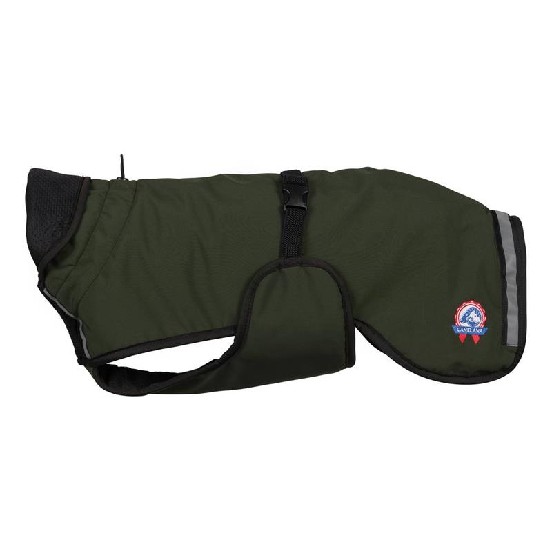 Fantastisk i både sne, ruskvejr og til de koldeste dage. Dækkenet ligger godt hen over ryggen og bagben. Det dækker og beskytter de vitale organer og store muskelgrupper. Fronten er ribstrikket for bedre fleksibilitet ved af- og påklædning. Den justerbare strop rundt om maven og mulighed for regulering ved både hals og bag giver den bedst mulig pasform til din hund.
